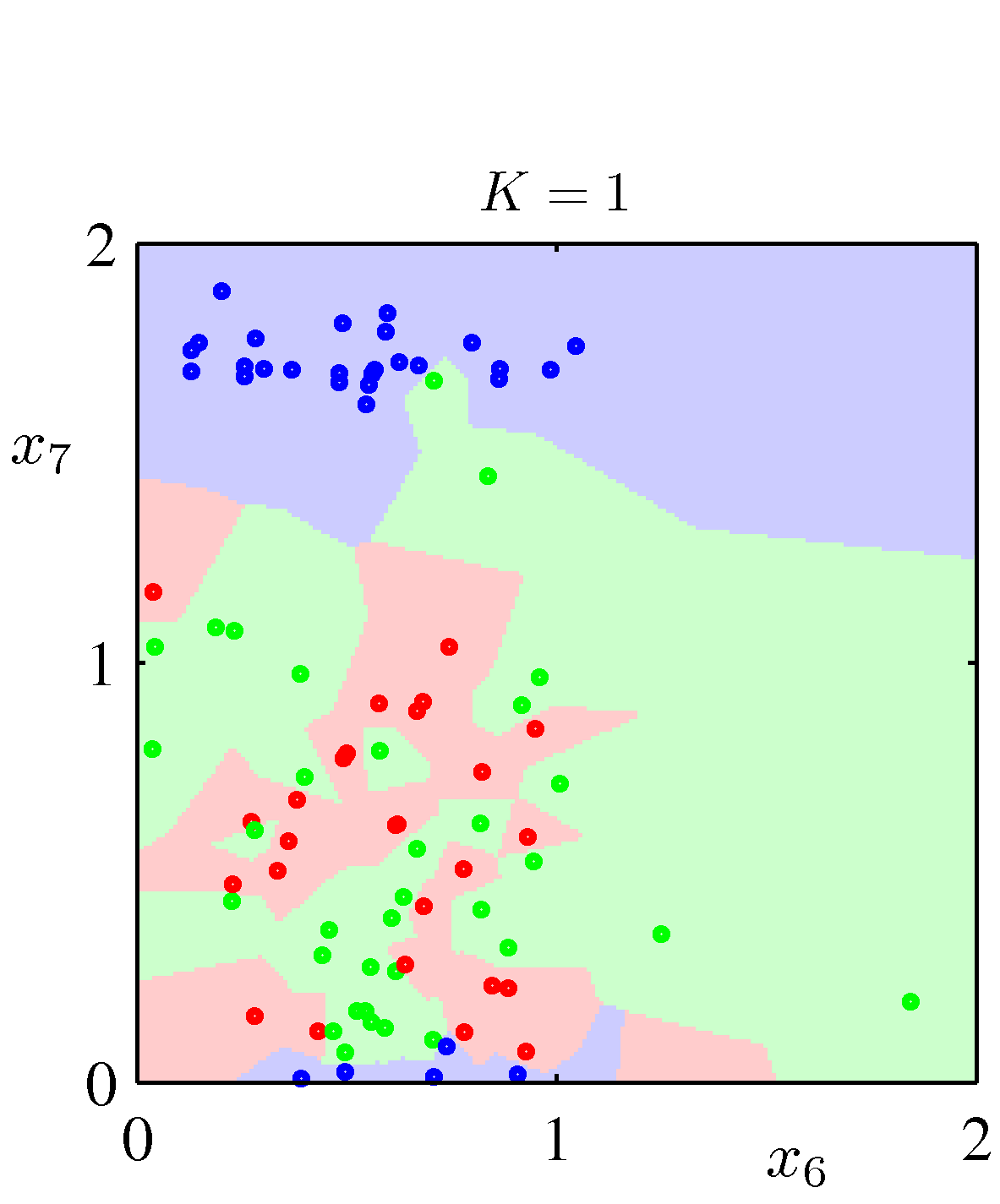 Figure 2.26 Figure 2.24와 2.25에 사용한 데이터에 KNN을 적용한 결과